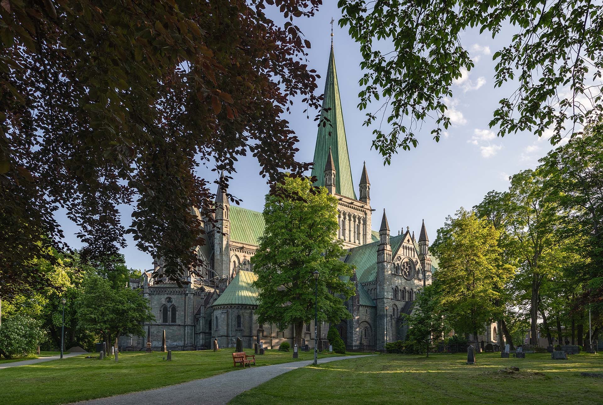 Home Destinations Trondheim One of Norway’s oldest cities, Trondheim is famous for its Gothic Nidaros Cathedral and the charming district of Bakklandet, a series of colourful wooden houses lined along the Nidelva River. Explore the area Summer climate: 18° high avg. / 8° low avg. Winter climate: 1° high avg. / -4° low avg. Currency: Norwegian krone (NOK, kr) Languages: Norwegian, English widely spoken Conveniently located midway between Southern and Northern Norway, Trondheim stands as the country’s third-largest city and a vital hub connecting these two distinct regions. Serving as a crucial transition point for travellers heading north, Trondheim captivates visitors with its historic architecture, remarkable landmarks, and innovative cuisine. Founded as early as 997 by Viking King Olav Tryggvason, Trondheim served as Norway’s capital until 1217. Its rich and eventful past is deeply woven into the city’s fabric, evident on a stroll through its charming centre, the colourful Bakklandet district, and past the majestic Nidaros Cathedral. The Nidelva River, which meanders through the city and is gracefully spanned by the iconic Gamle Bybro bridge, has shaped Trondheim’s atmosphere and character for centuries. Despite its enduring legacy, the city is quite young — in a literal sense. Trondheim is home to Norway’s largest university, and students make up a significant portion of its population, giving the city a youthful, dynamic atmosphere. Today, Trondheim is a leading centre for technology, research, and innovation, particularly in fields like health, energy, and sustainability. Innovation in Trondheim extends to all areas, especially to its culinary scene. The city has earned a solid reputation as the home of Norway’s most advanced culinary movement, with the wider Trøndelag region proudly bearing the title of “Home of Nordic Flavours.” Surrounded by fertile farmlands, vast forests, and the expansive fjord, Trondheim’s environment not only fuels its culinary passions but also the locals’ zest for outdoor adventures. And visitors are welcome to join them on an unforgettable fjord exploration by boat or delve into the expansive Bymarka wilderness on a hiking or cycling adventure. With its harmonious blend of historic architecture, authentic cultural traditions, and tantalizing culinary adventures, Trondheim is a city that undoubtedly deserves a prominent place on every traveller’s itinerary. Get in touch Explore Norwaywithout the effort. We’re here to help you escape reality — seeing incredible landscapes without the admin required to get there. Get in touch for custom tours tailored to you. Begin your Journey Tours via Trondheim Discover your options Explore a world of tour opportunities in Northern Europe. Our journeys are entirely customisable, but we’ve provided some itinerary inspiration to get you started. Create your own 10 Nights Year-Round Denmark’s Royal Capital and a Captivating Odyssey to the Norwegian Fjords Explore Scandinavia’s capitals and Norway’s majestic fjords on an unforgettable journey that combines city sightseeing with visits to the wonders of nature. 10 Nights Year-Round The Magic of Trondelag and Lofoten Unveiled Embark on a journey of a lifetime with our unique tour – The Magic of Trondelag and Lofoten Unveiled. This tour is the perfect balance of city exploration and nature activities, giving you an all-encompassing look at the beauty of Norway. Create your own The colourful houses of the historic Bakklandet district in Trondheim, Norway. Our local insight Things to do in Trondheim One of Norway’s largest cities, Trondheim boasts many remarkable attractions, historic architecture, and a wealth of opportunities for outdoor activities. Now, it’s time to explore the top 10 things to do in Trondheim, Norway. Visit the majestic Gothic Cathedral The majestic Nidaros Cathedral, Trondheim’s major historical and cultural landmark, towers over the city, captivating travellers with its striking architectural beauty. Built upon the burial site of Saint Olav, Nidaros was a significant pilgrimage destination in Northern Europe from the Middle Ages onwards. The present-day cathedral, predominantly Gothic in style with Romanesque elements, was constructed in the 19th and early 20th centuries, following extensive damage to earlier structures from several fires. Today, visitors can witness this remarkable edifice and admire its ornate west front, featuring intricate sculptures depicting biblical figures and Norwegian saints. Other striking highlights of Nidaros Cathedral include the octagonal choir above Saint Olav’s burial site, its several grand organs, and impressive stained-glass windows, some of which date back to medieval times. And it’s not just the architectural splendour that makes a visit to Nidaros one of the best things to do in Trondheim, Norway. In addition to wandering through the cathedral’s awe-inspiring interior, visitors can ascend the tower for panoramic views of the city, attend a service or concert, and even explore the historical museum at the adjacent Archbishop’s Palace. Overall, Nidaros is rightly regarded not only as one of the best places to visit in Trondheim but also as one of the most iconic landmarks in all of Norway. Explore colourful Bakklandet Northern Lights over the colourful Bakklandet district in Trondheim, Norway. One of the city’s oldest and most charming districts, Bakklandet nestles along the Nidelva River, just across the old town bridge from the city centre. Its colourful wooden houses, enchanting cobblestone streets, and idyllic riverside location create a truly dreamy atmosphere, making it one of the most extraordinary places to see in Trondheim. Travellers can wander around the district’s charming streets and browse the local unique boutiques, artisan shops, and small art galleries, enjoying a distinctive shopping experience away from the city centre. Here, visitors can s